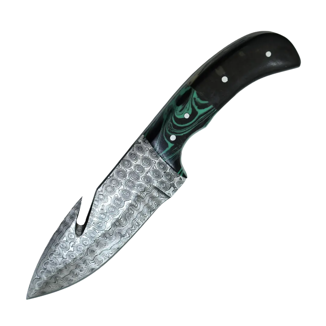 4 Inches Emerald Damascus Gut Hook Knife for Field Dressing