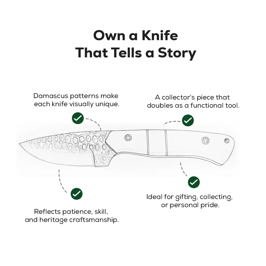 Style: Heritage Hunter, a timeless example of Damascus steel handmade knives, focused on durability and elegance.