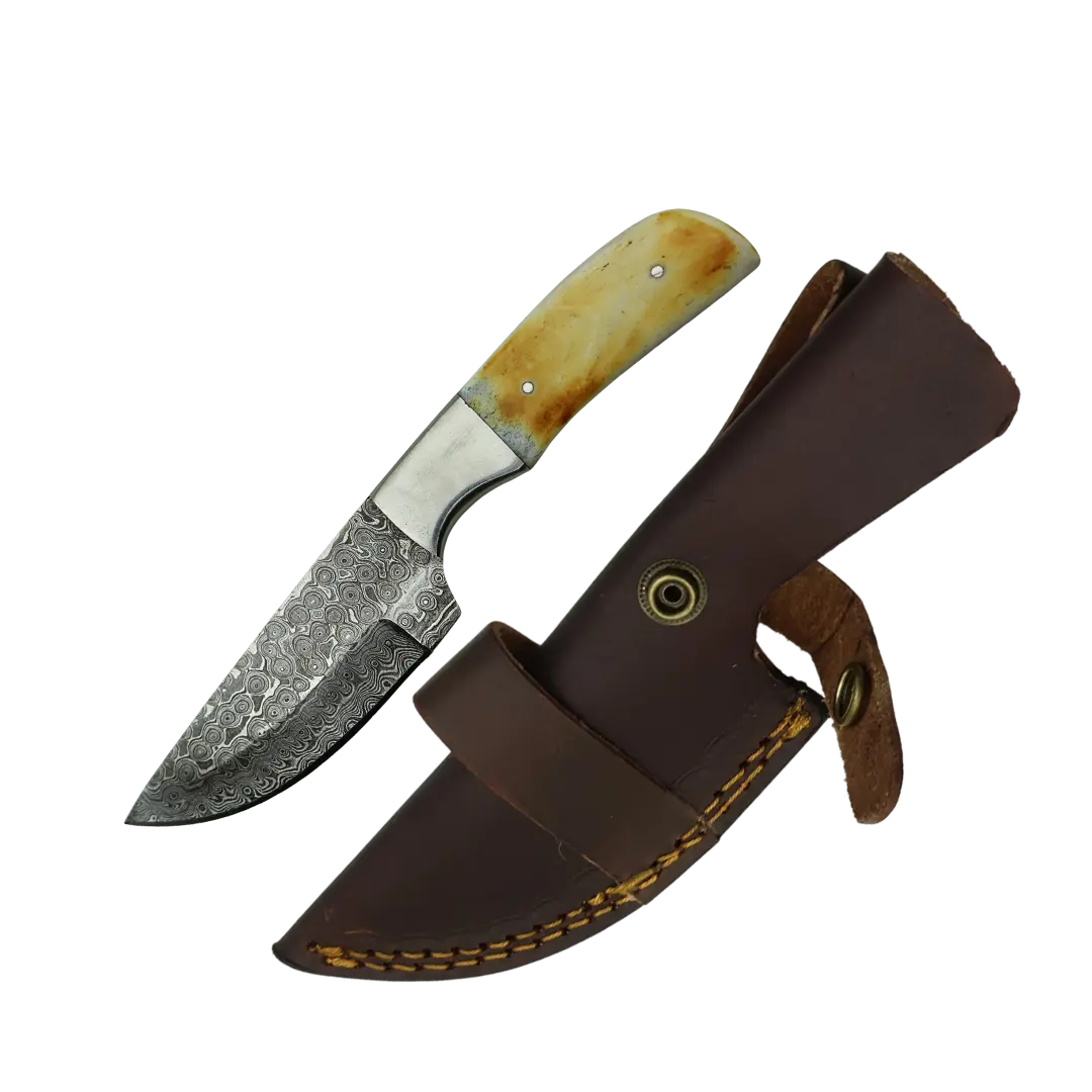 4 Inch Ivory Trail Damascus Full Belly Drop Hunter Knife