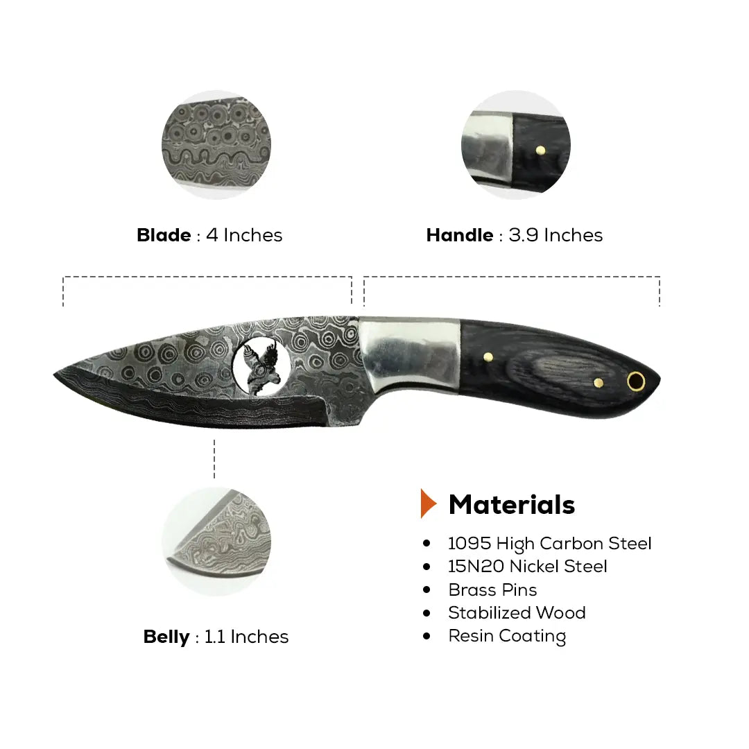 4 Inch Stormwing Scout Damascus Fixed Blade Knife for Field