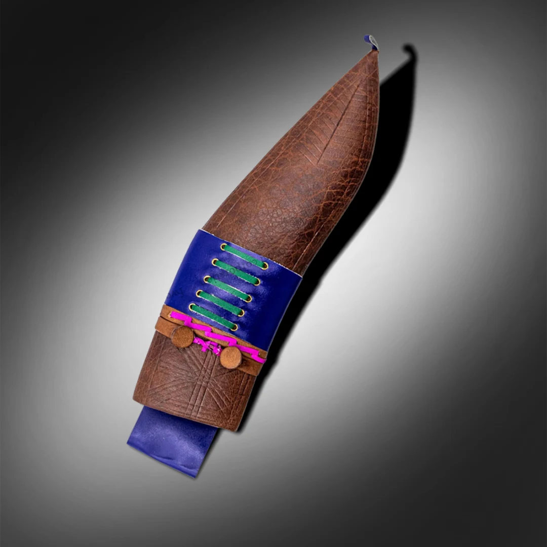 Two carved wooden panels shaped to the blade are wrapped in buffalo leather. Hand-stitched for strength, this sheath also carries the chakmak (sharpener) and karda (utility knife). The complete set is both functional and steeped in tradition — a true warrior’s kit.