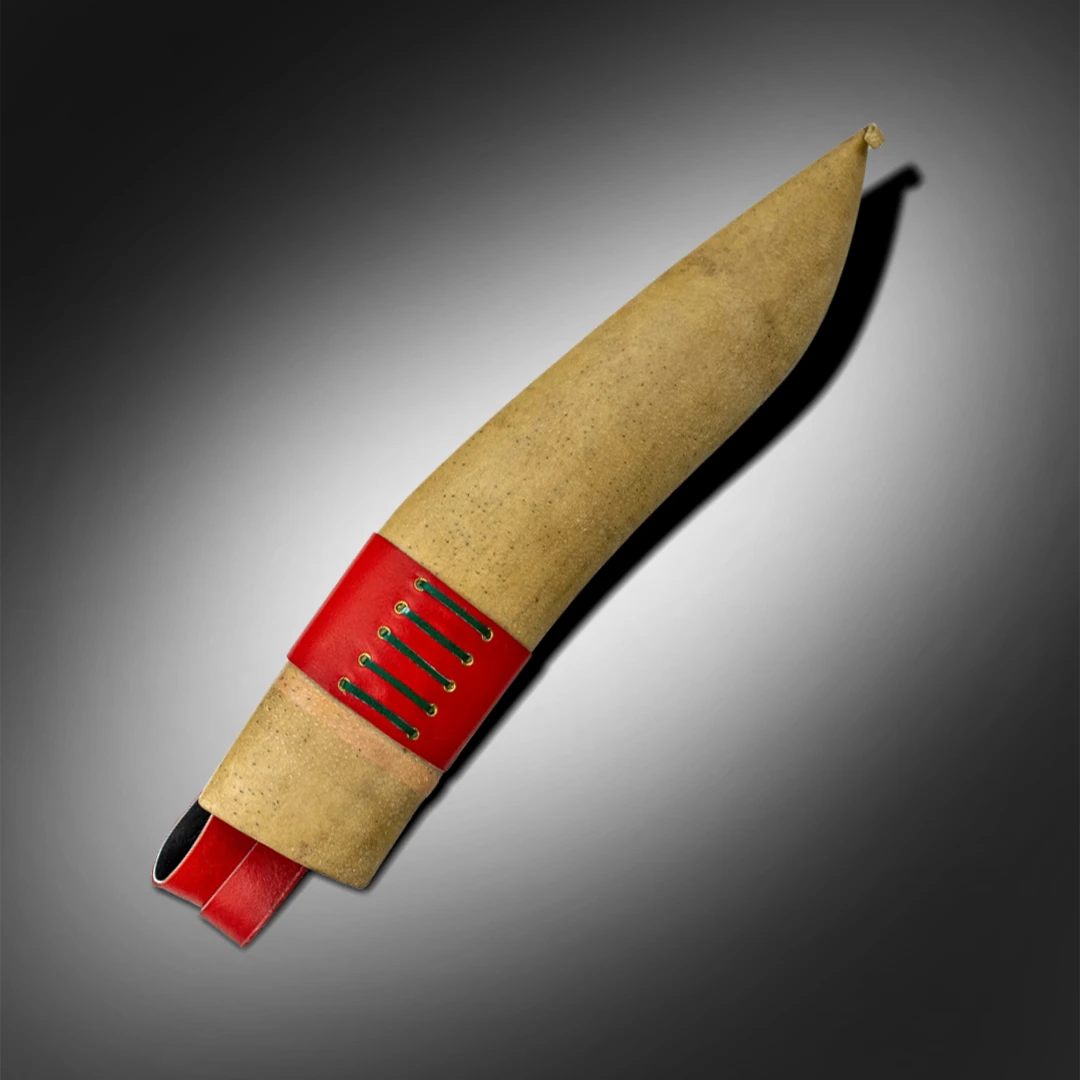 - Sheath: Leather-wrapped wooden scabbard, handcrafted