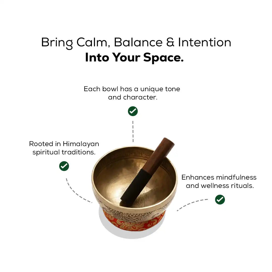 Singing bowl is a spiritual power that gives clarity of mind and intuition. This singing bowl is a machine made in Nepal. This singing bowl is used for meditation, yoga, and other kinds of healing. It has many benefits like helping in relaxation reflex, improving nervous system, and inhibiting the pain response or stress.