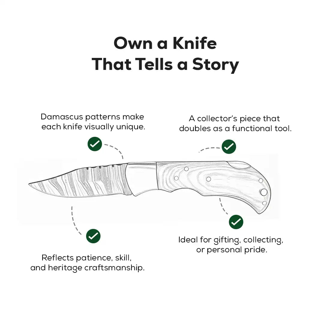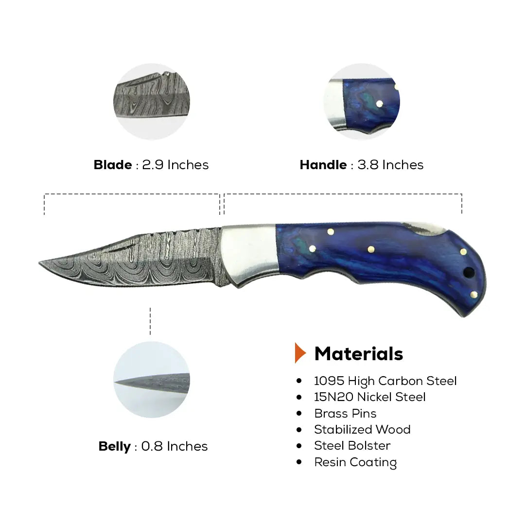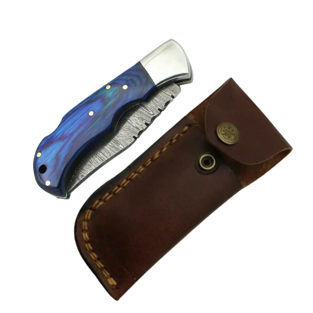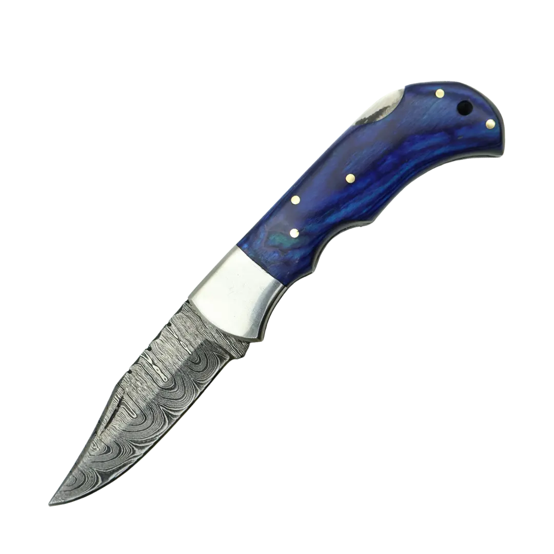 These Damascus steel handmade knives are built to survive the test of time. The lockback system is crisp and keeps the edge away from your fingers when closed. It is a versatile tool for the kitchen, the garden, or the campsite. The blue handle makes it a standout piece in any display. You will love how easy it is to carry this knife every single day. It is a refreshing take on a traditional folding tool.