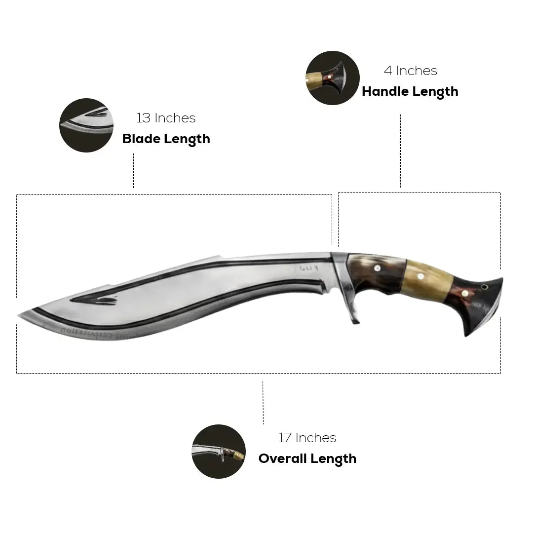 13-Inch Handmade Gurkha Kukri Knife with Leather Sheath